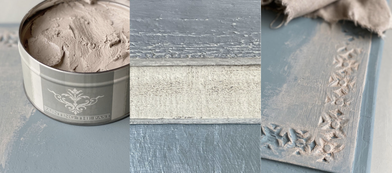Painting the Past Paste Wax kan worden aangebracht ter bescherming van hout. De gekleurde Paste Was is zeer geschikt om over Painting the Past Mat Krijtlak aan te brengen om een verweerd, antiek of vergrijsd effect te creëren.